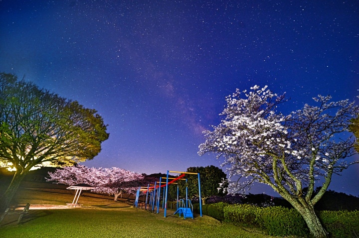 【講評】春の夜の公園という幻想的な情景を見事に捉えた一枚です。広角レンズの効果を熟知し、満開の桜と満天星空の広がりを配置良く収めた視点が素晴らしいです。