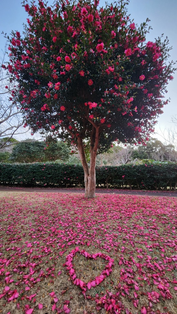 田平公園の山茶花は本当に素敵で、散った花びらでハートを作って撮りました。
